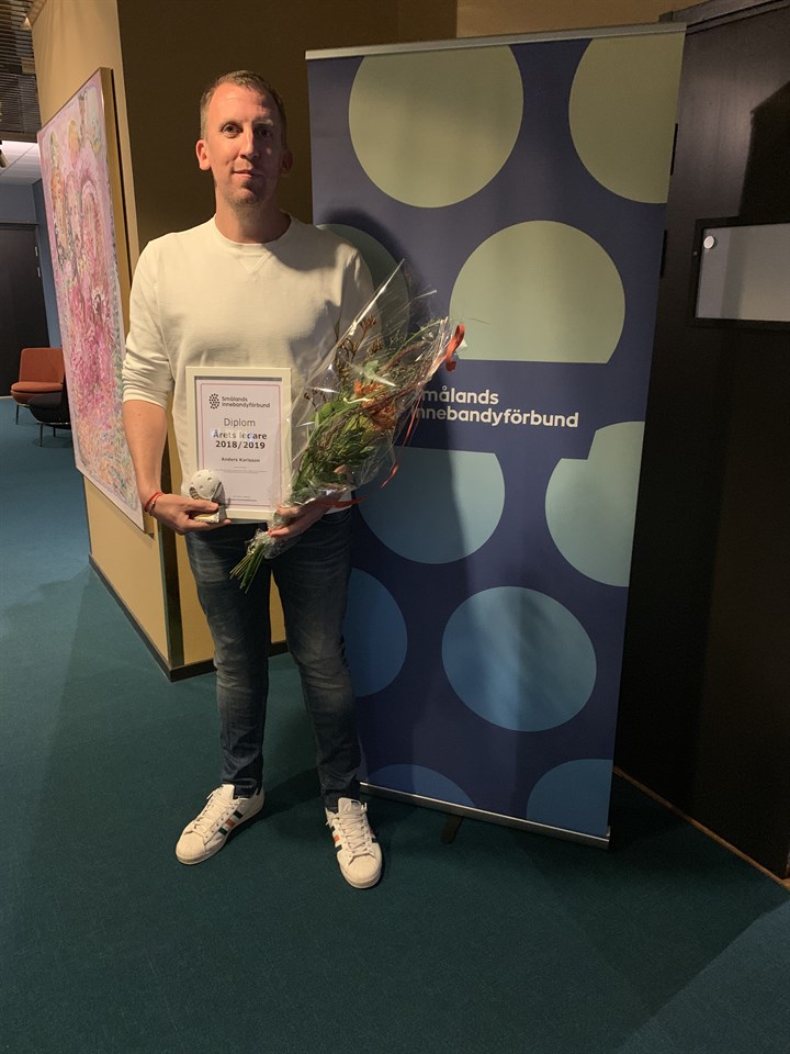 Den 18/9 höll Smålands Innebandyförbund sitt årsmöte. I samband med detta delades det ut utmärkelser för den gångna säsongen 2018/2019. Vi i Ingelstad IBK är mycket stolta och glada för att vår egna Anders Karlsson, ledare och styrelseordförande, idag mottagit utmärkelsen Årets ledare 2018/2019. Härligt att vår klubb leds av Årets ledare - en ledare med rätt värderingar och ett enormt engagemang. Grattis Anders!