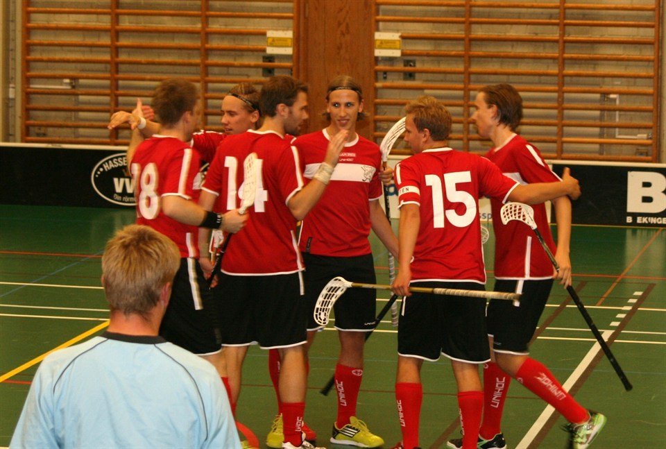 Efter en lång försäsong var det i fredags äntligen dags att dra igång Division 2 Småland. Ett laddat men sammanbitet lag åkte ner till Karlskrona för att möta Örlogsstaden i Vedebyhallen, det kändes på stämningen att den här dagen var efterlängtad. Det blev oerhört glädjande aldrig något snack om vilka som var det bättre laget, vi vann tillslut med 4-12. Vi la i högsta växeln direkt och första 10 minuterna i första perioden är riktigt bra, efter dessa 10 när vi både tagit ledningen och uttökat den en gång så slappnar vi av, dock får vi in ett tredje mål men resten av perioden får vi tacka dagens målvakt Viktor Claesson för att vi kan gå till pausledning med 0-3, Viktor gör ett par ruskigt svettiga räddningar. Andra perioden vinns sedan med 0-5 och är vår bästa akt i matchen, effektiva är bara förnamnet och vi får även chansen att spela ett par powerplay och gör mål i båda två. Vi leder med otroliga 0-8 inför den sista tredjedelen av matchen. När man gjort två riktigt bra perioder och leder så stort så är det alltid svårt att upprepa succén, så blev också detta fallet målmässigt. Spelmässigt fortsätter vi spela bra när vi har bollen, men vissa stunder blir vi för sugna på att välja det svårare alternativet istället för det lätta och det straffar sig, vi tappar koncentrationen i defensiven en aning och det kommer straffa sig mot alla lag i den här serien. 4-4 slutar sista perioden och slutresultatet 4-12 är ett faktum. En på det stora hela mycket bra premiär, det märks att det Martin försöker printa in i våra huvuden under träningar ger resultat, vi spelar med en helt annan trygghet än föregående år och vi har fått ihop ett riktigt härligt gäng som trivs med varandra, har kul och tydligen kan lira rätt bra innebandy ihop också. Poängen fördelades (mål+assist): Mazdak Shiasi, 2+2. Viktor Gustavsson, 0+4. C-G Widerström, 2+1. Johan Söderberg, 2+1. Magnus Gustafsson, 1+2. Joacim Widen, 2+0. Daniel Andersson, 2+0. Rasmus Elb, 1+0. Tommy Regin, 0-1. Jesper "Pejje" Andersson, 0+1. Bilder från matchen tagna av "Bettan" Eriksson finns under fliken "Bilder". Nu ser vi fram emot söndagens hemmapremiär mot Vimmerby, 14.00 tekas det!