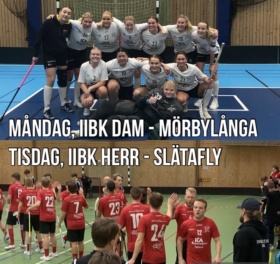Eftersom coronapandemin sköt upp flera av våra matcher den senaste tiden så duggar nu hemmamatcherna tätt. I veckan som kommer spelar våra seniorlag matcher måndag, tisdag och onsdag kväll. Vi inleder med damlagets match imorgon på hemmaplan mot Mörbylånga. På tisdag tar herrlaget emot Slätafly i en viktig match. På onsdag spelar dessutom div 4-laget mot Rottne. Matchen står som hemmamatch, men på grund av tidsbrister i Ingelstad Sporthall så kommer matchen att spelas i Rottne. Eftersom restriktionerna är släppta så tar vi nu emot publik som vanligt igen, men det är fortfarande möjligt både att köpa förköp samt att följa matcherna via livesändningen på solidsport. Länkar för biljettköp och livesändningar finner ni nedan; IIBK Dam – Mörbylånga, Måndag Livesändning - https://solidsport.com/ingelstad-ibk-a-lag-damer/games/g/y34ix3ah Förköp – https://www.biljettkiosken.se/event/220214-ingelstadibk-cl98 IIBK Herr – Slätalfy, Tisdag Livesändning - https://solidsport.com/ingelstad-ibk-a-lag-herrar/games/g/p5mmb62m Förköp – https://www.biljettkiosken.se/event/220215-ingelstadibk-iibk_herr_slatafly